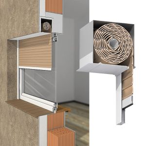 Rolety elewacyjne montowane przed stolarką okienną. Skrzynki rolet umieszczone dyskretnie w murze, pod powierzchnią elewacji...