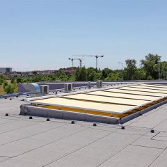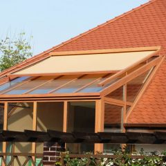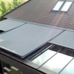 System Veranda przeznaczony jest do przysłaniania płaskich powierzchni poziomych i ukośnych, takich jak tarasy, ogrody zimowe, świetliki dachowe. Wbudowany system naciągu utrzymuje napięcie tkaniny nawet na dużych powierzchniach.